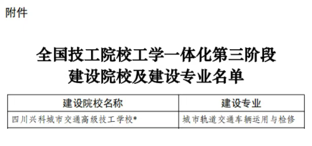 2025年,我校城市轨道交通车辆运用与维修专业成功获批全国技工院校公学一体化第三阶段建设院校及建设专业,成为四川第一个、全国仅三所获批建设该专业的雷竞技官网竞猜