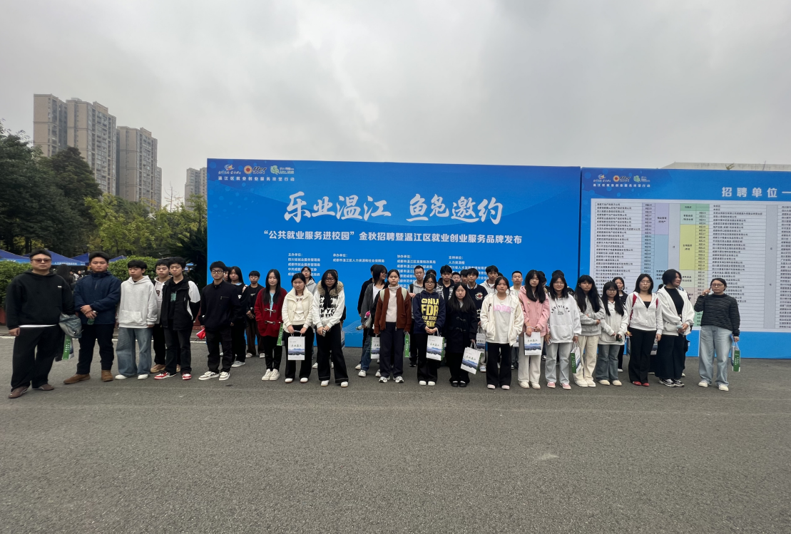 近日,我校组织五年制高职学生代表赴成都师范学院,参加“乐业温江 鱼凫邀约”公共就业服务进校园金秋招聘会暨温江区就业创业服务品牌发布活动。本次活动由四川省就业服务管理局、成都市人力资源和社会保障局、中共成都市温江区委、成都师范学院、成都市温江区人民政府联合主办,成都市温江区人力资源和社会保障局承办,旨在搭建精准就业服务平台,发布区域就业服务品牌,促进高校毕业生等青年群体高质量充分就业。