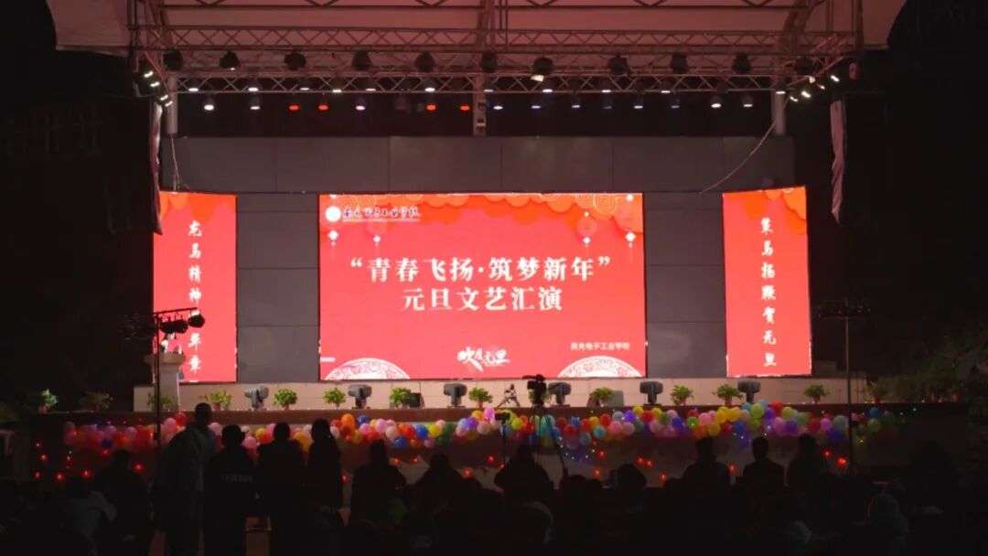 12月29日晚,我校上操场灯光璀璨、座无虚席,处处洋溢着青春的活力与新年的喜悦。以“青春飞扬·筑梦新年”为主题的2026年元旦文艺演出在这里隆重举行,全体师生齐聚一堂,共同迎接新年的到来,在艺术的熏陶中陶冶情操、接力中国梦、树立正确的人生价值观,展现了丰富多彩的校园文化生活。