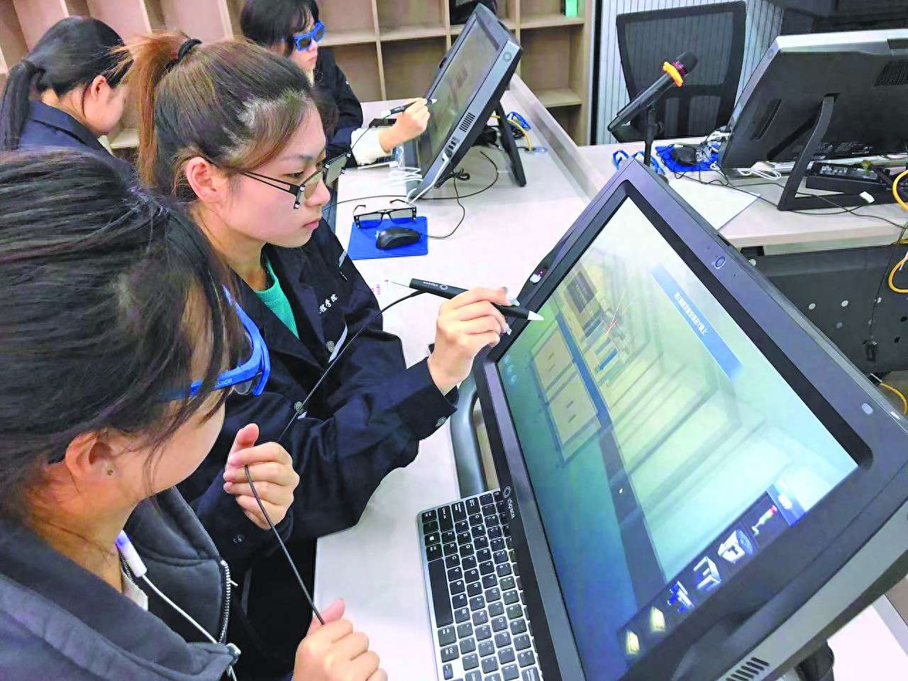 金华职业技术大学学生正在上虚拟仿真实训课。 受访者供图