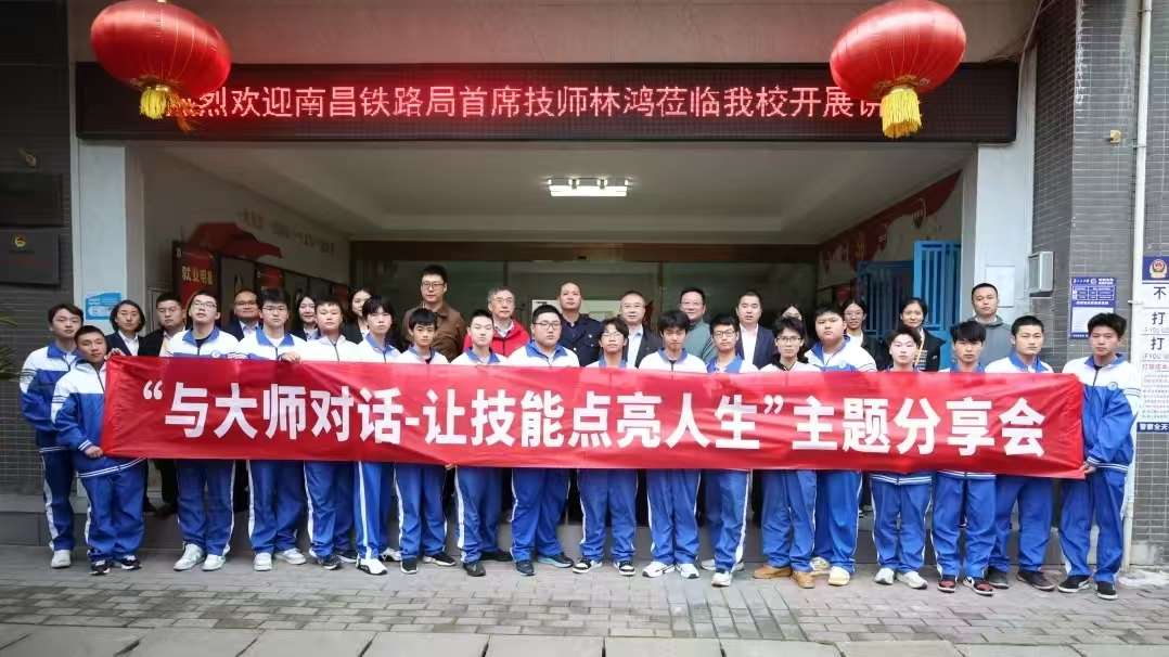 四川兴科城市高级技工雷竞技官网竞猜 开展与大师对话-让技能点亮人生主题分享会,南昌铁路局动车组司机首席技师林鸿分享