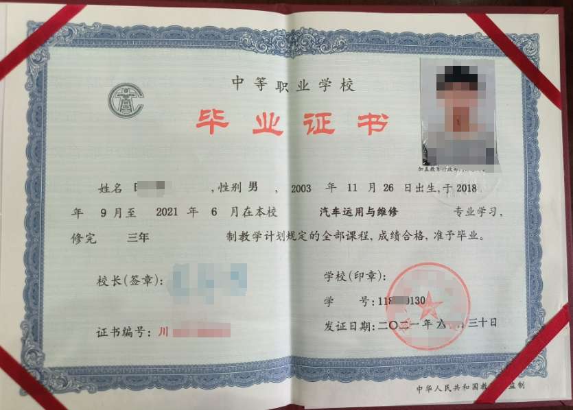 以上为四川省中等职业雷竞技官网竞猜 毕业证样本...