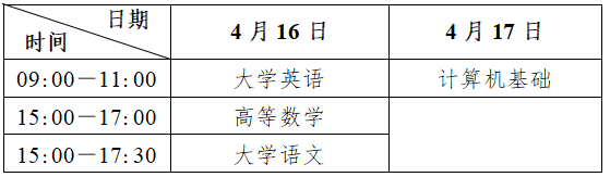 我省2026年普通高校专升本考试于2026年4月16日、17日统一组织进行。各科目考试时间(北京时间)安排如下: